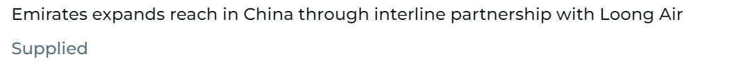 Loong 游海湾:阿联酋航空公司和长龙航空公司建立合作关系 Gulf News(海湾新闻)今天报道:阿联酋航空公司(Emirates)和长龙航空公司(LoongAir)签订协议,使阿联酋航空公司的乘客可以很方便地抵达中国多个城市。 |
