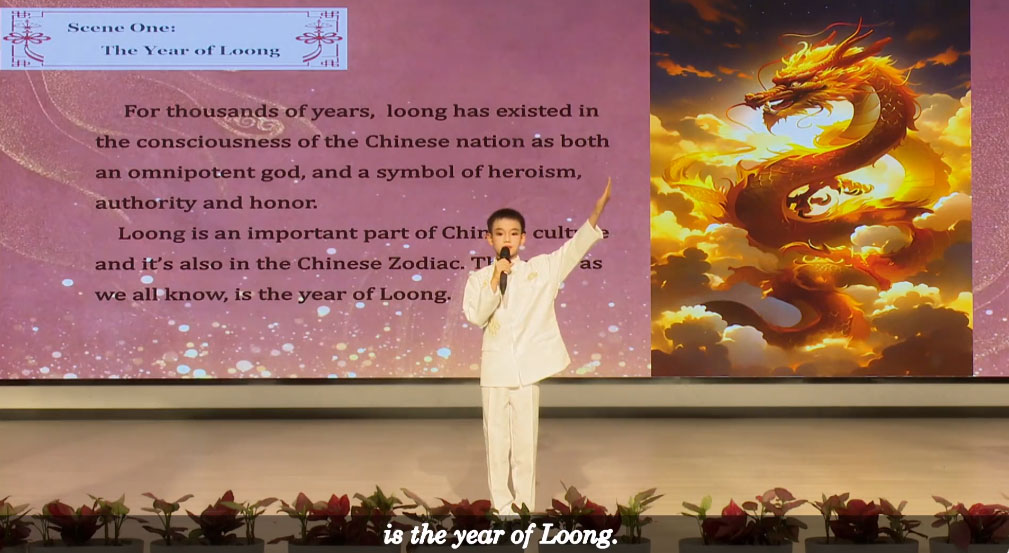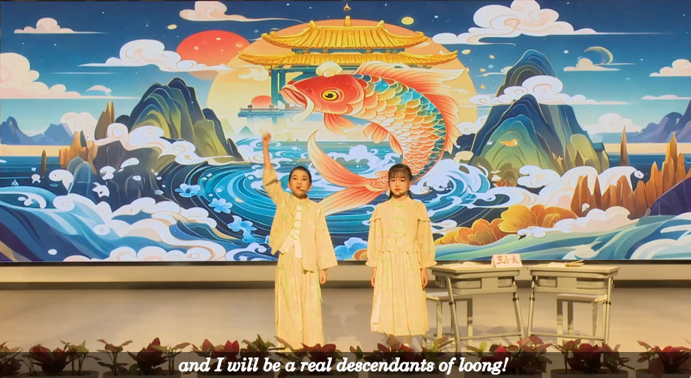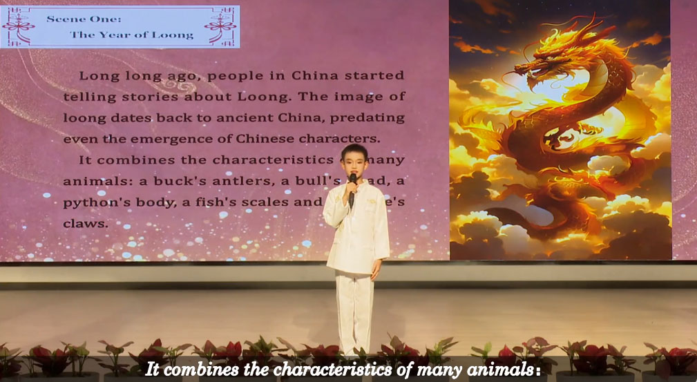 英语情景剧:Loong in China(中国有龙,杭州市景和小学) 原标题: 本作品“Loong in China(中国有龙)”是一部围绕中国龙文化展开的原创舞台剧,意在展现中国龙文化的内涵、在生活中的体现以及与西方龙概念的对比。 |